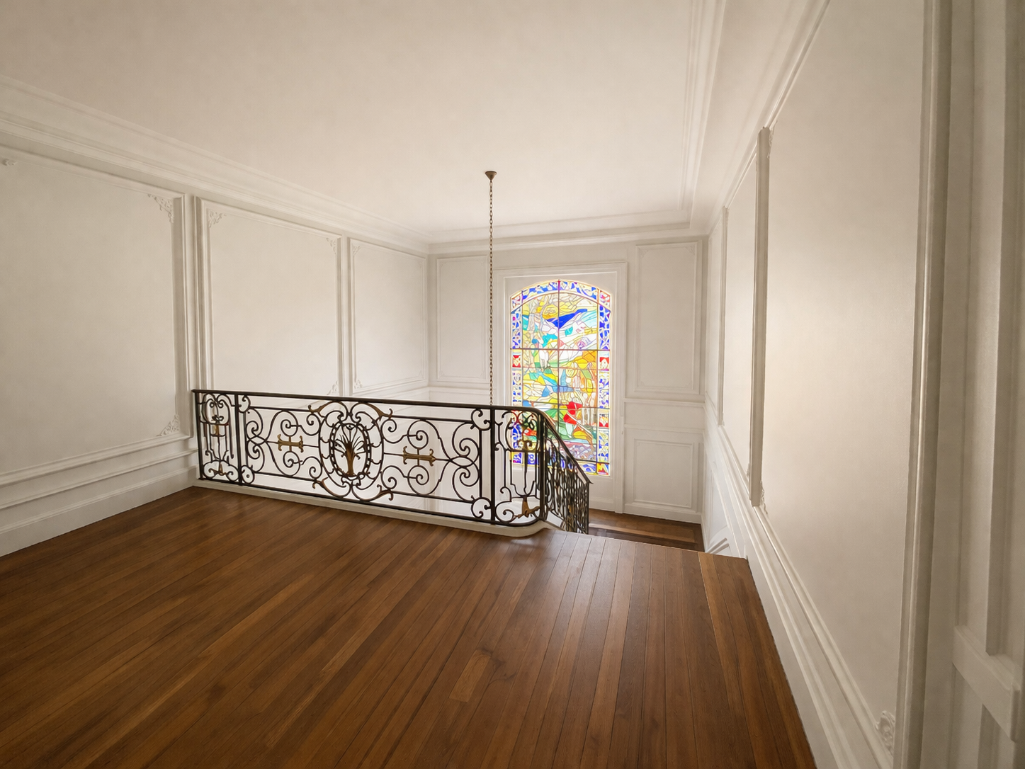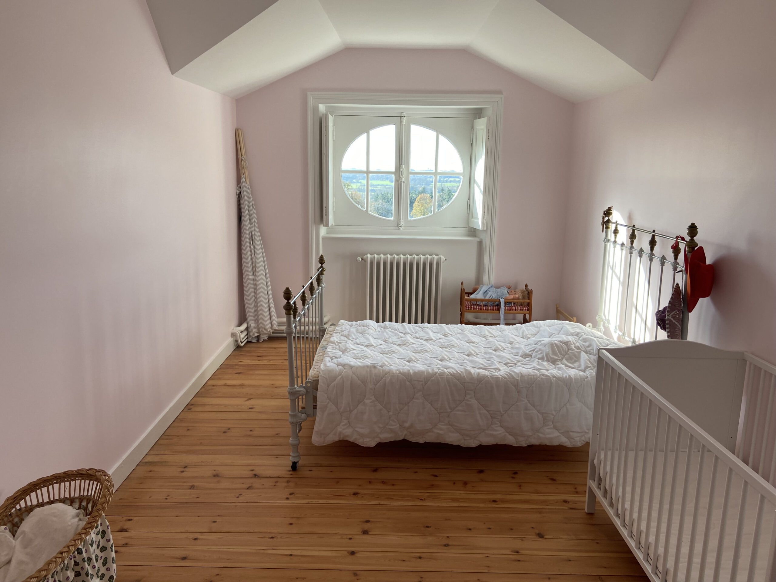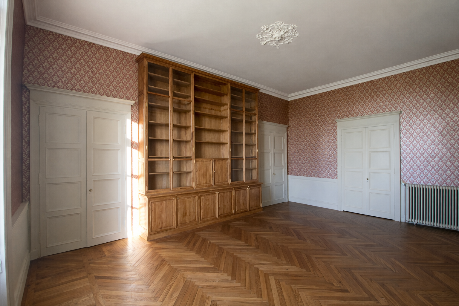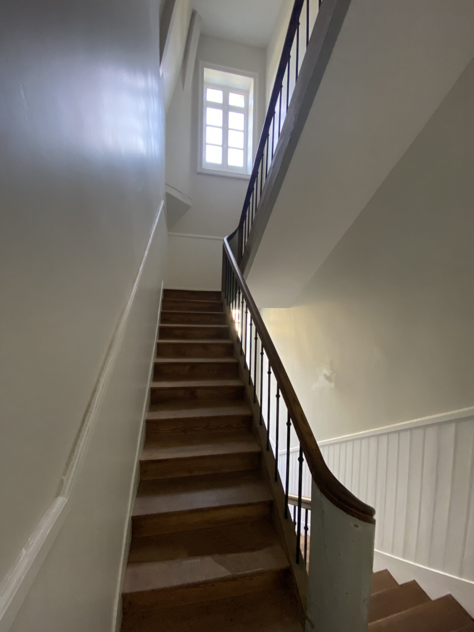 Dans ce château XVIIIème, les équipes réorganisent les espaces pour améliorer le confort quotidien. Désormais, chaque chambre dispose d’une salle de bains attenante ou privée. Ainsi, les volumes répondent aux exigences actuelles sans altérer l’existant. Par ailleurs, les techniciens étendent le chauffage jusqu’au deuxième étage. Cette adaptation assure une diffusion homogène dans toutes les pièces. Ensuite, les artisans restaurent les parquets avec méthode. Chaque surface est poncée puis protégée par une finition cirée. De cette manière, le bois retrouve éclat et durabilité. En complément, les peintres reprennent toutes les pièces avec des teintes adaptées. Certaines zones intègrent également des papiers peints pour enrichir les ambiances. Enfin, les équipes installent une cuisine contemporaine parfaitement intégrée. Elle associe fonctionnalité, esthétique et respect du caractère du château XVIIIème. Ainsi, le projet atteint un équilibre clair entre modernité et patrimoine.